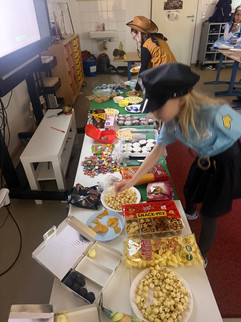 Natürlich durften auch unsere tollen Kostüme nicht fehlen. Bei einer kleinen Modenschau in der Klasse haben wir sie vorgestellt und gegenseitig bewundert.