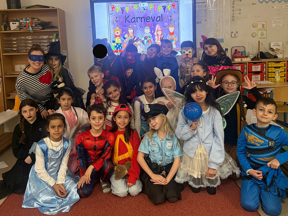 Es war ein fröhlicher Karnevalstag voller Spaß, Gemeinschaft und guter Stimmung – die Otterklasse 2c freut sich schon auf das nächste Fest! 🦦✨